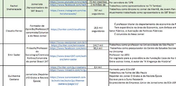 Veja a lista de jornalistas e influenciadores em relatório do governo